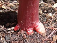 de Impatiens son profundas y de color rojizo, como sus tallos. Ambas características